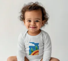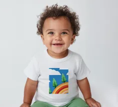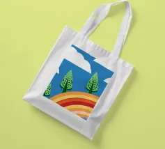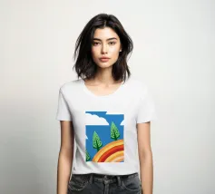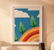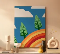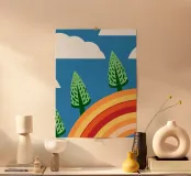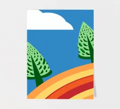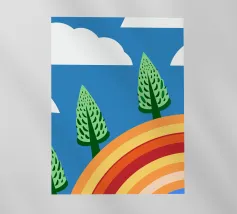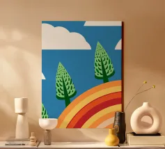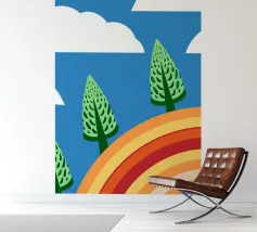 Vegetables and rainbows in a cheerful style, giving a positive and inspiring touch.