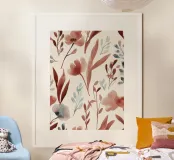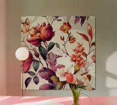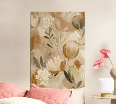 Questo delicato motivo floreale nei caldi rossi argilla e nei morbidi blu ardesia dona un tocco fresco e pittorico a qualsiasi spazio. Lo stile acquerello sciolto e le forme organiche evocano un'eleganza naturale, perfetta per gli interni boho moderni, le camere da letto o le zone living più tranquille.