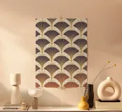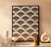 Questo elegante motivo Art Déco di ventagli e forme geometriche impreziosite dall'oro incarna il glamour degli anni '20 e '30 e aggiunge un tocco di lusso nostalgico a qualsiasi ambiente.