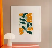 Adornate le vostre pareti con questa accattivante stampa floreale astratta, che ricorda l'iconico stile Marimekko e il design moderno di metà secolo. Audaci fiori arancioni con foglie stilizzate verde scuro e morbidi steli verde acqua si intrecciano su uno sfondo color crema, creando una composizione armoniosa e organica. Perfetto per aggiungere un tocco di sofisticata semplicità ed eleganza senza tempo a qualsiasi spazio contemporaneo. Questa stampa d'arte digitale di alta qualità, resa meticolosamente a 7000x5000 pixel e 300 dpi, assicura che ogni linea nitida e ogni ricca tonalità sia splendidamente conservata, portando il design classico nella vostra casa.