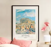 Questo splendido poster cattura l'antica grandezza dell'Acropoli di Atene con un tocco di pop art moderna. L'opera d'arte raffigura l'iconico Partenone che si erge maestoso sulla città, con una scena animata di visitatori e le rovine storiche in primo piano. Una figura femminile solitaria in primo piano aggiunge un tocco contemporaneo. Le pennellate dinamiche e la ricca tavolozza di colori, composta da blu tenui, caldi toni sabbiosi e arancioni, conferiscono una nuova energia a questo monumento storico. Con una risoluzione superiore di 7000x5000 pixel e 300 dpi, questo poster digitale di alta qualità è un bellissimo omaggio a uno dei più grandi monumenti del mondo.