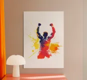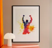 Atleta in posizione di vittoria Trending Now poster con telaio in legno