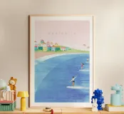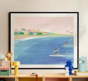 Scopri il tuo angolo di paradiso con la stampa d'arte incorniciata "Australia" di Henry Rivers. Questo pezzo vivace e colorato è perfetto per dare vita a qualsiasi ambiente della tua casa. Le splendide onde e le surfiste evocano un senso di avventura e libertà, rendendolo ideale per gli amanti del mare e della spiaggia. Che tu stia arredando un salotto, uno studio o persino una camera da letto, questa stampa si adatta a ogni stile di arredamento, dall'elegante al casual. Realizzata con materiali di alta qualità, questa stampa è pronta per essere appesa o esposta. Porta un po' di Australia nella tua vita!