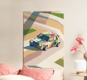 Scoprite un'illustrazione digitale di auto a due volumi con uno stile artistico moderno, dinamico ed elegante.