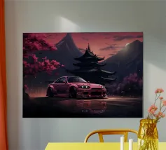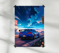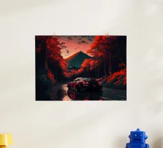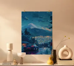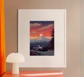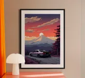 auto sunset mountain poster
