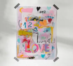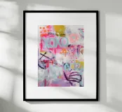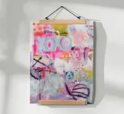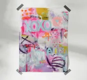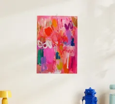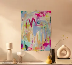 "XOXO" - un'allegra illustrazione artistica dai colori vivaci che celebra l'amore e gli abbracci! Il dipinto acrilico astratto combina motivi vivaci in rosa, azzurro e arancione, con pennellate dinamiche e pois che creano un movimento giocoso. Perfetto per una stanza moderna ed estiva!