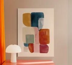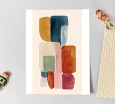 Scopri l'arte moderna con la stampa artistica 'Balanced Shapes'. Questa opera presenta forme stilizzate e colori armoniosi, perfetta per abbellire il tuo soggiorno o ufficio. Realizzata su carta di alta qualità e incorniciata in legno, aggiunge un tocco di eleganza e originalità a qualsiasi ambiente.