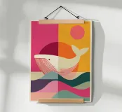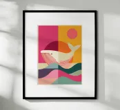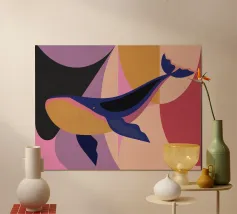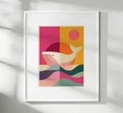 Scopri la nostra esclusiva stampa artistica "Balena e Sole", un'opera ideale per decorare le pareti di qualsiasi stanza. Realizzata con una cornice in legno di alta qualità, questa stampa aggiunge un tocco d'arte astratta e colorata, perfetta per camere da letto, salotti e uffici.