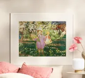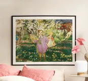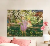 Bambini in un frutteto in fiore poster