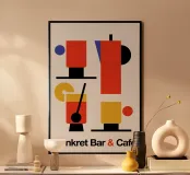 A minimalist design with bold typography and simple geometric shapes. Its clean lines and modern color palette make it a great addition to any space.