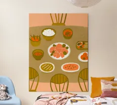 Un design che celebra lo spirito di aggregazione e la gioia di condividere cibi deliziosi.