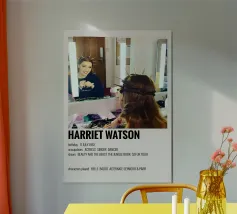 Dai un tocco di stile al tuo spazio con la stampa artistica "BARRETT DOSS" incorniciata in legno. Questa stampa elegante e moderna, perfetta per ogni tipo di ambiente, è un regalo unico per i fan delle serie TV e degli spettacoli teatrali.