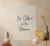 Aggiungi un tocco di umorismo al tuo bagno con la stampa artistica “Bathroom Selfies” di Ayleen! Questa opera d'arte in cornice di legno è perfetta per chi cerca un modo originale e divertente per decorare uno spazio privato. Con la sua frase spiritosa, invita a riflettere sull'uso del cellulare in bagno, rendendo ogni visita un momento di sorriso. Adatta a ogni tipo di arredamento, è ideale anche come regalo per amici e familiari che apprezzano un design creativo e fresco. Realizzata con attenzione ai dettagli, questa stampa porta calore e personalità nella tua casa. Non lassciarti sfuggire l’opportunità di stupire i tuoi ospiti con un pezzo d’arte originale!