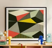 Aggiungete un tocco vivace alle vostre pareti con il design Bauhaus. Quest'opera d'arte presenta tonalità vivaci in un intricato motivo ispirato ai disegni geometrici prevalenti nel movimento artistico Bauhaus. L'illustrazione, intessuta da un'eccitante accozzaglia di forme geometriche, conferisce un nostalgico tocco di retro-chic, che non mancherà di suscitare conversazioni. I motivi lineari e i colori vivaci si fondono magnificamente per dare un'atmosfera vivace a qualsiasi ambiente. Questo motivo colorato è stato catturato con magnifici dettagli in formato vettoriale, assicurando un effetto complessivo nitido e definito.