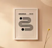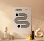 Abbracciate l'estetica iconica del movimento Bauhaus con questa sorprendente stampa grafica del 1919. Caratterizzata da un'accattivante composizione astratta con una forma centrale vorticosa o a forma di S composta da molteplici linee bianche e nere, affiancate da due cerchi neri pieni. Negli angoli superiori sono riportati i testi "BAUHAUS" e "1919", che fanno riferimento all'anno di fondazione della scuola. Questa opera d'arte incarna i principi del design modernista: forma, linea e modello, con un flusso visivo dinamico. Questo file di arte digitale di alta qualità vanta una straordinaria risoluzione di 7000x5000 pixel a 300 dpi, che garantisce un'eccezionale risoluzione.