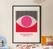 Bauhaus Eye Stampa d'arte astratta di Forme geometriche moderniste, poster con telaio in legno