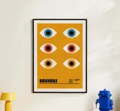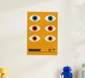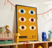 Esplorate la vibrante astrazione geometrica con questa sorprendente stampa grafica Bauhaus di Juli - Sept 1923. Caratterizzata da un'accattivante e densa composizione di forme geometriche, tra cui cerchi, semicerchi e archi, in colori vivaci (nero, bianco, rosso, arancione e blu). Queste forme si sovrappongono e interagiscono, formando un complesso disegno astratto. In basso, le scritte "BAUHAUS" e "JULI - SEPT 1923" fanno riferimento a un periodo significativo per la scuola. Quest'opera d'arte incarna i principi del design modernista - forma, colore e composizione - con un'impronta contemporanea influenzata dal movimento Bauhaus, mettendo in risalto l'aspetto della scuola.