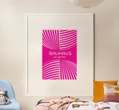 Un poster astratto ed esilarante che combina la tipografia pulita della scuola Bauhaus con le visioni ipnotiche della Op Art. Il disegno presenta quattro quadranti di linee bianche curve e radianti su uno sfondo rosa caldo (fucsia) intenso e vivido, creando una potente illusione ottica di movimento e profondità. Questo pezzo offre un tocco contemporaneo e ad alto contrasto sul modernismo geometrico. Le scritte "BAUHAUS" e "JULI - SEPT 1923" sono centrate in grassetto. Fornita come file digitale di alta qualità (7000×5000 pixel, 300 dpi), quest'opera d'arte garantisce una stampa nitida e di qualità da galleria.