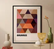 Griglia a triangolo Bauhaus - Stampa geometrica astratta d'arte moderna poster con telaio in legno