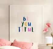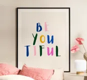 Scritta colorata su sfondo chiaro: Be you tiful.