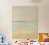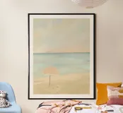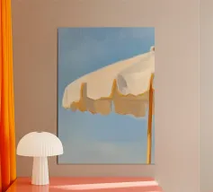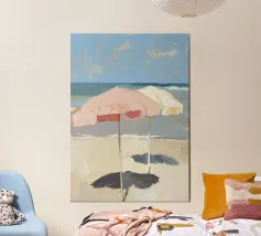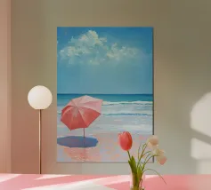 Questo poster cattura la perfetta giornata estiva in riva al mare blu turchese. Ideale per tutti coloro che desiderano sole, sabbia e mare, l'immagine porta l'atmosfera rilassata della spiaggia direttamente sulla vostra parete.