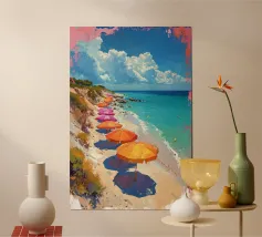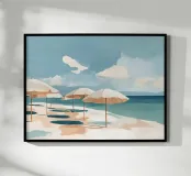 Scopri il nostro poster "Ombrelloni Mare", un'illustrazione acquerellata che cattura la serenità della spiaggia. Perfetto per arredare qualsiasi ambiente, dal soggiorno alla camera da letto, porta un tocco di freschezza e tranquillità nel tuo spazio.