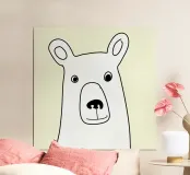 "Orso in un quadrato giallo" è un divertente disegno della collezione Bears in Squares. Questo orso giocoso è perfetto per aggiungere un tocco di estro e colore a qualsiasi spazio.