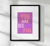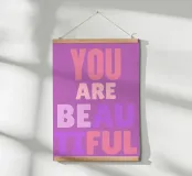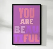 Porta un tocco di positività e bellezza nella tua casa con questo poster minimalista che celebra il messaggio "YOU ARE BEAUTIFUL". Ideale per arredare la camera da letto o uno spazio pensato per la riflessione e il benessere personale, il design elegante si adatta perfettamente a qualsiasi ambiente moderno.