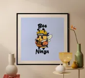 Una simpatica ape vestita da ninja, con una bandana sulla fronte e un vestito ispirato a Naruto, gusta un delizioso ramen in stile chibi. Il gioco di parole "Bee Ninja" unisce umorismo, simpatia e riferimenti alla cultura pop giapponese, creando un'opera d'arte unica e divertente. Questa stampa è ideale per i fan degli anime, gli otaku e tutti coloro che amano le illustrazioni divertenti con un tocco geek.