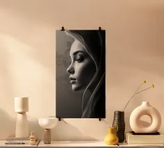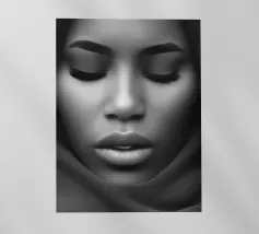 Immergetevi nell'affascinante mondo dell'arte con il nostro design "Mystical Beauty". Questo impressionante primo piano di una donna con gli occhi chiusi unisce grazia e mistero. I dettagli del volto e i toni tenui dei colori creano un'atmosfera di calma e forza interiore. Questo disegno è perfetto per aggiungere un tocco estetico e ispiratore a qualsiasi ambiente.