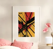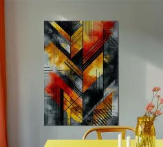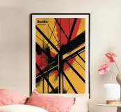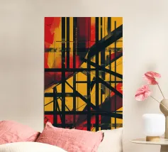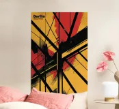 Celebrazione dello spirito audace di Berlino, questo poster astratto mescola linee nette con sorprendenti tonalità rosse e gialle. I motivi sovrapposti suggeriscono movimento ed energia, facendo eco al paesaggio culturale in continua evoluzione della città. Ogni elemento interagisce con gli altri, creando un senso di profondità e dinamismo. Questa composizione grafica è perfetta per chi apprezza l'arte urbana che cattura il cuore di una metropoli vibrante.