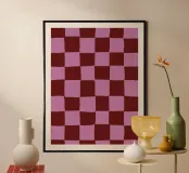 Moderno motivo a scacchiera. In una combinazione di colori berry di tendenza.