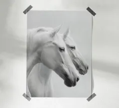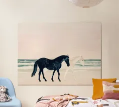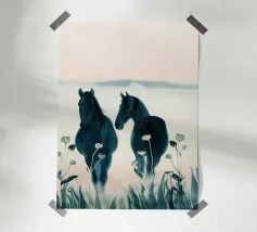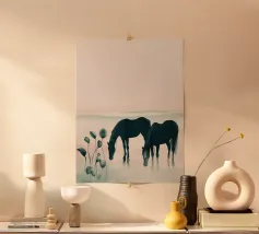 Scopri il poster "Between Here and There" di Solenne West, elegante e minimalista, perfetto per arredare qualsiasi ambiente. Questo design presenta due bellissimi cavalli in un tono delicato, ideale per chi desidera aggiungere un tocco di serenità e natura alla propria casa.