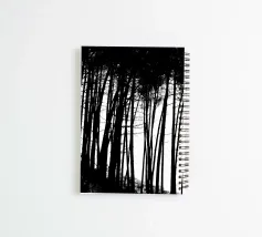 Fotografia in bianco e nero di una pineta
