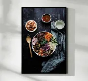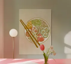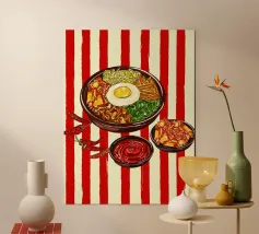 Scopri la bellezza della cultura coreana con la nostra Stampa Artistica Incorniciata in Legno “Bibimbap” di Eat this. Perfetta per dare un tocco di freschezza e stile alla tua casa, questo pezzo è ideale per la cucina, il soggiorno o anche come regalo originale per gli amanti della cucina asiatica. Le sue vibranti tonalità di cibo fresco e la delicatezza del design la rendono un elemento d'arredo versatile e di classe. Facile da appendere e realizzata con materiali di alta qualità, “Bibimbap” porterà serenità e stimolo visivo in qualsiasi ambiente. Non perdere l'occasione di arricchire il tuo spazio con un autentico pezzo d’arte!