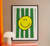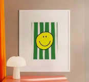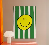 Un grande sorriso su strisce morbide e moderne. Le parole semplici e allegre e i toni caldi danno un tocco di energia giocosa e di fascino accogliente, perfetto per ravvivare le camere da letto, gli spazi creativi o qualsiasi altro luogo che accolga un po' di gioia.