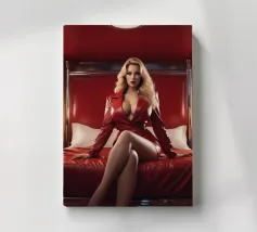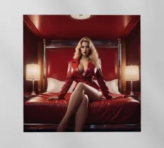 Questa sexy donna bionda, nella sua camera da letto rossa, sta aspettando sul vostro letto. Sta aspettando i suoi nuovi vestiti di pelle. Non fate aspettare troppo questa bellezza bionda.