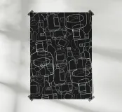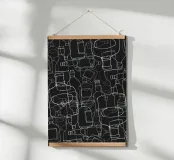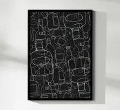 Il design presenta un'illustrazione lineare e minimalista di diverse bottiglie in uno stile astratto e giocoso. L'estetica in bianco e nero si adatta perfettamente agli interni moderni o di ispirazione scandinava e aggiunge un tocco creativo e contemporaneo a qualsiasi ambiente. Ideale per cucine, bar o zone living che cercano qualcosa di speciale.