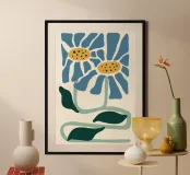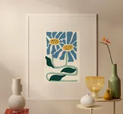 Adornate le vostre pareti con questa accattivante stampa botanica astratta, che ricorda una linoleografia, con due margherite blu stilizzate con centro giallo e foglie verde scuro. Le forme audaci e semplificate e la palette di colori della terra creano un'estetica moderna e rustica, perfetta per aggiungere un tocco di eleganza naturale e di stile artistico a qualsiasi spazio. Questa stampa d'arte digitale di alta qualità, resa meticolosamente a 7000x5000 pixel e 300 dpi, assicura che ogni linea nitida e ogni ricca tonalità sia splendidamente conservata, portando un fascino unico alla vostra casa.