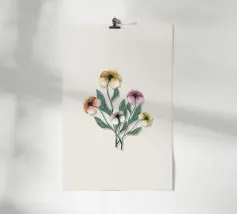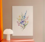 Lebendig, zart und harmonisch – dieses florale Aquarell-Motiv bringt frühlingshafte Farben und gute Laune an deine Wand. Die liebevoll gestalteten Blüten in Blau, Lila, Gelb und Rosa machen das Poster zu einem echten Hingucker – perfekt für Kinderzimmer, Flur, Küche oder als Geschenk. Ideal kombinierbar mit weiteren floralen Prints für einen stimmigen Look.