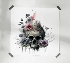 Teschio floreale composto da elementi floreali liquidi di Ali Gulec