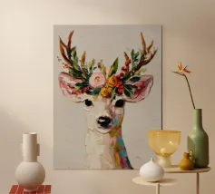Un ritratto composto in cui la dolcezza diventa una forma di autorità. Coronata da morbidi fiori e collocata su uno sfondo tenue, la figura irradia una calma sicurezza e una forza tranquilla. Quest'opera d'arte riflette la morbidezza come stabilità, una presenza costante che non ha bisogno di affermarsi per essere percepita.