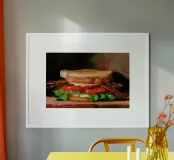 Noah Verrier, uno dei 40 migliori pittori americani di New American Paintings, propone deliziose nature morte di classici comfort e fast food americani. Panini al formaggio grigliato, PB&J o Big Mac prendono vita e fanno venire l'acquolina in bocca. La tecnica magistrale dell'artista di creare contrasti, catturare la luce o far brillare la superficie di una goccia di formaggio è a dir poco magistrale. Noah è un ex professore d'arte e vive con la sua famiglia a Tallahassee. Le sue opere sono state esposte in tutto il mondo, tra cui Giappone, Australia, Germania, India, Canada, Inghilterra e Francia.