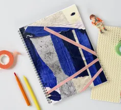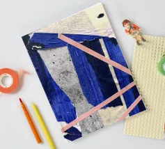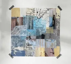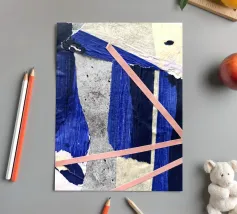 Si tratta di un collage con carta e nastro adesivo colorato. Ho usato il colore acrilico.