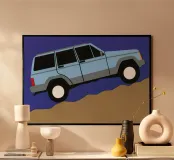 Porta un tocco moderno e vivace alla tua casa con l'opera "Blue SUV" di Rosi Feist. Questo art print incorniciato in legno si adatta perfettamente a vari stili di arredo, dal minimalista al più audace. È ideale per chi ama i SUV o l'arte contemporanea e offre un'opzione perfetta da mettere in salotto, in una camera da letto o anche in un ufficio. Con il suo design accattivante e i colori blu e grigi, sarà il punto focale di qualsiasi stanza. Regala o fai un acquisto per te stesso e lascia che la tua passione per i veicoli si esprima attraverso l'arte! La dimensione di 15 x 10 cm rende questo pezzo versatile e facile da appendere o appoggiare, rendendolo un'aggiunta perfetta per chi cerca di abbellire il proprio spazio con qualcosa di unico.