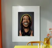 Illustrazione caricaturale umoristica del noto cantante e musicista giamaicano, nonché padre del Reggae, Bob Marley. Una delle caricature realizzate per la serie Celebrity Sunday, in cui un personaggio famoso viene ritratto in un giorno. L'idea è di mostrarli come in una fototessera per avere coerenza.