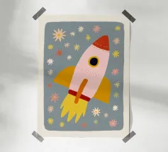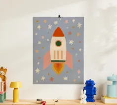 Porta un tocco di avventura e sogno nella stanza dei tuoi bambini con questa stampa art print in legno dalla collezione Boho. Caratterizzata da un aereo circondato da stelle e pianeti, questa decorazione murale è perfetta per ispirare la fantasia. Ideale per una nursery o per un angolo dedicato ai giochi.