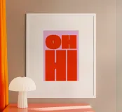 Arte tipografica retrò in grassetto con "OH HI" in rosso su rosa poster