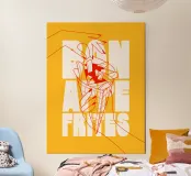 Chi non ama le patatine fritte? Essendo il mio cibo preferito in assoluto, non ho resistito a creare una vasta gamma di stampe artistiche con protagoniste proprio loro :) Questa è caratterizzata da un disegno rosso brillante su uno sfondo giallo girasole. Perfetto per tutti gli amanti delle patatine fritte!