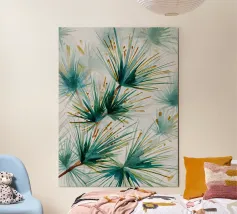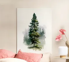 Un delicato gruppo di conifere sfuma nel bianco della carta in questa serena composizione ad acquerello. Con i suoi toni indaco freddi e i bordi ammorbiditi, questo pezzo evoca la quiete di una nebbiosa foresta mattutina - un'aggiunta pacifica a interni moderni rustici o di ispirazione scandinava.